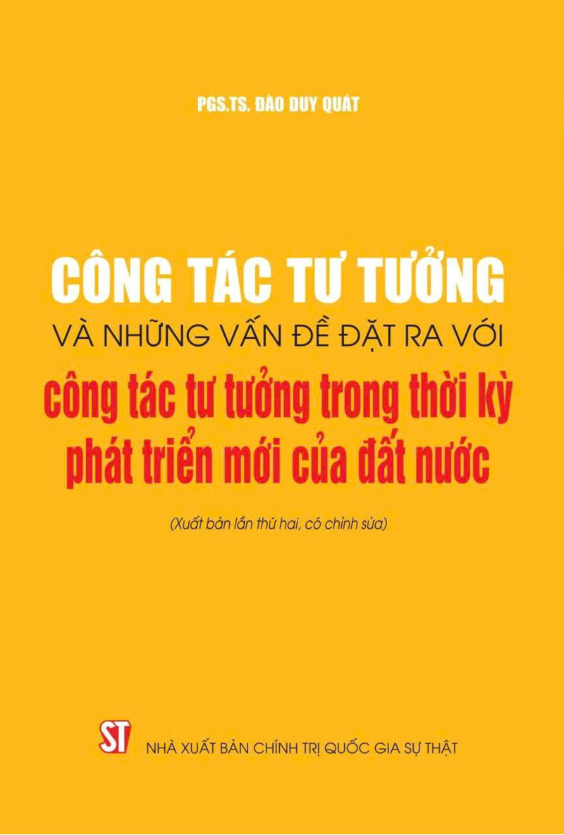 Công tác tư tưởng và những vấn đề đặt ra với công tác tư tưởng trong thời kỳ phát triển mới của đất nước" (Xuất bản lần thứ hai, có chỉnh sửa) là một cuốn sách nghiên cứu về công tác tư tưởng của Đảng Cộng sản Việt Nam, đặc biệt trong bối cảnh đất nước đang trong giai đoạn phát triển mới. Cuốn sách tập trung vào việc hệ thống hóa các vấn đề chung về công tác tư tưởng, phân tích và đề xuất giải pháp để giải quyết những thách thức đặt ra trong quá trình đổi mới tư duy và phương thức công tác tư tưởng, đồng thời nâng cao hiệu quả của công tác này trong tình hình mới.