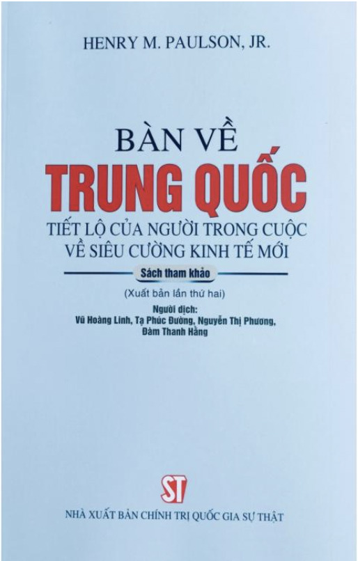 Cuốn sách của Henry M. Paulson Jr., cựu Bộ trưởng Tài chính Hoa Kỳ, chia sẻ góc nhìn sắc sảo về quan hệ kinh tế Mỹ - Trung từ một người trong cuộc. Với hơn 100 chuyến công tác tới Trung Quốc trong gần 25 năm, Paulson mang đến những phân tích sâu sắc về quá trình cải cách kinh tế Trung Quốc, mối quan hệ song phương đầy phức tạp và ảnh hưởng toàn cầu của các chính sách kinh tế Trung Quốc. Cuốn sách cũng phản ánh kinh nghiệm cá nhân trong việc làm việc với các nhà lãnh đạo cấp cao Trung Quốc, cùng những nhận định về kinh tế Mỹ. Đây là tài liệu giá trị cho giới nghiên cứu, hoạch định chính sách và độc giả quan tâm đến kinh tế quốc tế trong bối cảnh thế giới nhiều biến động.